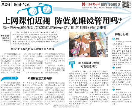 海都·有医说医 【上网课戴防蓝光眼镜,防近视?或许拔苗助长!】防蓝光≠防近视 最近,孩子们宅家上网课,家长都为孩子的视力“捏把汗”,为此,声称“能防蓝光、防辐射、防近视”的防蓝光眼镜卖到脱销。现在没有科学数据证明防蓝光眼镜能防控近视,对蓝光形成的视疲惫有无缓解效果也不确定。如有条件,可用远距离的投屏代替近距离的电子屏幕,但没必要佩带防蓝光眼镜。市面上的防蓝光眼镜大多带有色彩,且质量良莠不齐,假如儿童使用时间过长,反而简单形成视觉疲惫。有些孩子戴了防蓝光眼镜,会觉得电脑屏幕偏暗,或许会不自觉地调整亮度,也会对眼睛形成损伤。因而,过度防护不可取。